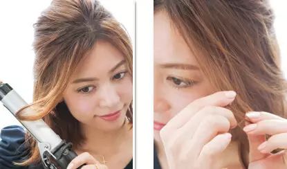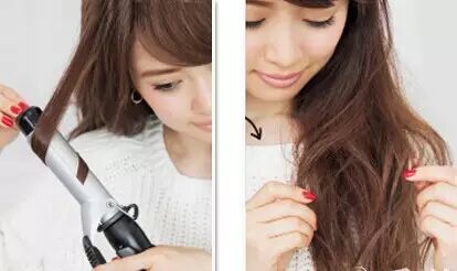 用电卷棒将头发烫卷,然后用手将烫过的卷发拉出蓬松自然的线条。
