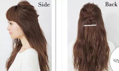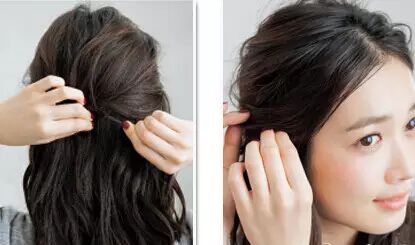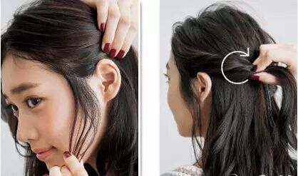 预留好刘海的头发,将头顶的头发取出一部分稍加整理后向一个方向进行扭转,然后用隐形发卡在扭转的地方固定住。