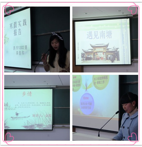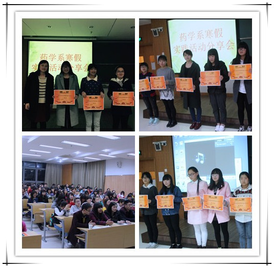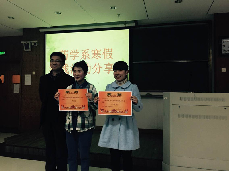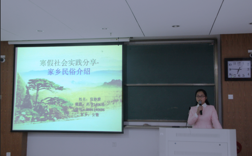 3月19日晚18点,药学系寒假社会实践分享会在K219拉开了帷幕。此次分享会邀请了药学系4位辅导员老师以及药学系学生会主席团担任评委。 经过老师的精心遴选,在寒假社会实践活动中共18位同学的作品脱颖而出,她们分别是大一组王晓雨、赵思丹、叶婉君、吕巧露、陈漫、金霞、马璟龙、张秀草、倪静雅、徐银宁,大二组施雪琪、许超超、沈佳萍、张春艺、沈俊、求佳尔、徐玉菲、林宣丹。每位参赛同学按照既定顺序上台演讲,他们拿着早已准备好的演讲稿,配合着精心制作的PPT,饶有兴趣地介绍着各自家乡的风俗,充满自信地展示着未来的职业规划。同学们的演讲各具特色,精彩纷呈。第一位登台的同学来自衢州,她展示了衢州人喜辣的特点,娓娓道来自己家乡以食辣为乐的风俗。第二位同学眉飞色舞地展示了拥有几百年“妈祖巡安”历史的温州苍南县,洋溢出那份来自心底的自豪。接下来的同学也不甘示弱,隆重介绍了存在“中国黄芪之乡”之称的甘肃陇西的陇西李氏文化,让观众不禁为之一叹。以方言开头的来自宁波南塘的同学,更是第一时间吸引了观众的眼球,让在座的同学跟随她一起感受江南水乡的风韵。而大二学生则不同于大一同学的青涩,他们严谨翔实地向大家介绍了自己的就业市场调研报告。他们深入家乡的医院、药店以及药企,通过对“工作的基础认识”,“工作的深入认识”,“抉择与简历”等方面,剖析了现今药学专业的严峻就业形势。“太容易实现的那不叫梦想”,“越努力运气越好”等精彩而又振奋人心的句子激荡起大家心中层层涟漪。最后还有来自内蒙古宁城县的同学秀出了家乡的大明塔及庙会,经过这位同学的介绍,使大家了解到原来青青草原的牧场已成为充满现代气息的美丽小镇。伴着轻悦的音乐,分享会进入尾声最终1411班王晓雨和1301班施雪琪凭借着出色的表现,夺得一等奖。 这次寒假社会实践分享会不仅让我们领略了不同地方的风俗文化,也让我们对药学的就业市场现状有了更为清晰的认识,严峻的就业形势给我们敲响了警钟,提醒我们应该为未来树立目标,做好准备努力飞翔。(记者团:文/杜丽丽,图/吴伟峰)