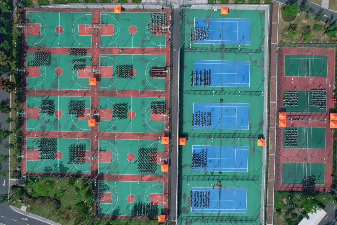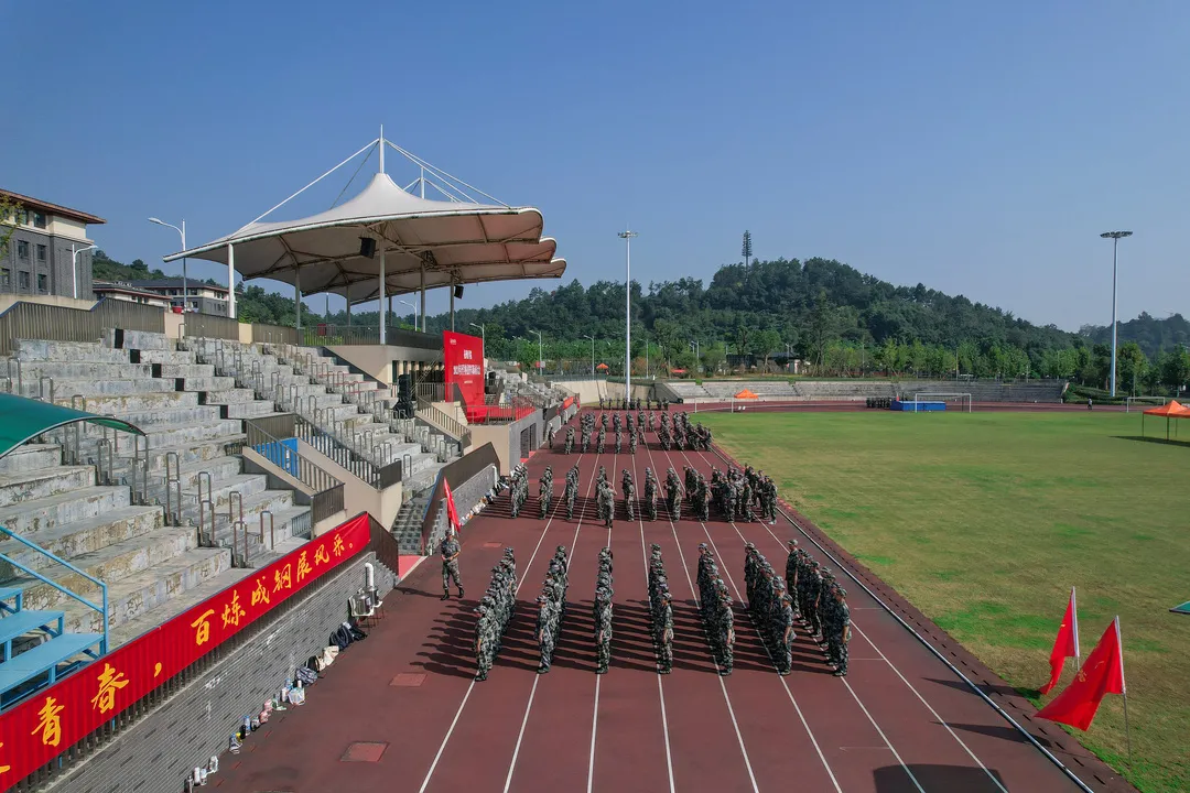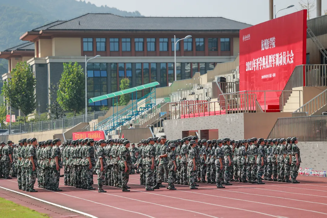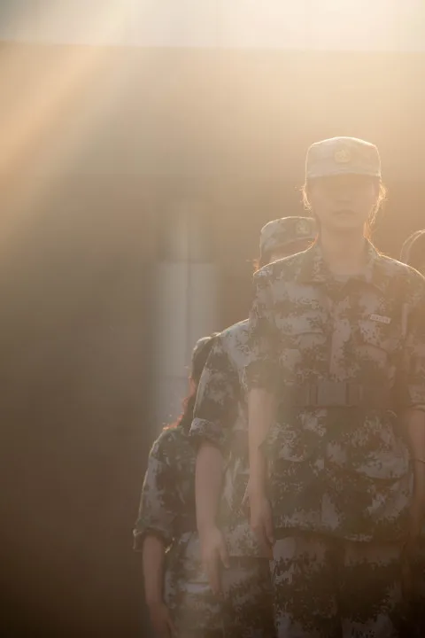 初秋的第一缕阳光 偷偷溜进小杭青们寝室的一角 悠悠吹响了军训早训的号角 迎着第一抹晨光 同学们已经身着戎装 神清气爽地奔向操场 开启了军训的新征程